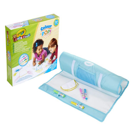 - Washable Markers: The set includes 4 Crayola washable markers in vibrant colors. These markers are designed to wash easily from the mat, skin, most washable clothing, and painted walls, ensuring a mess-free experience.