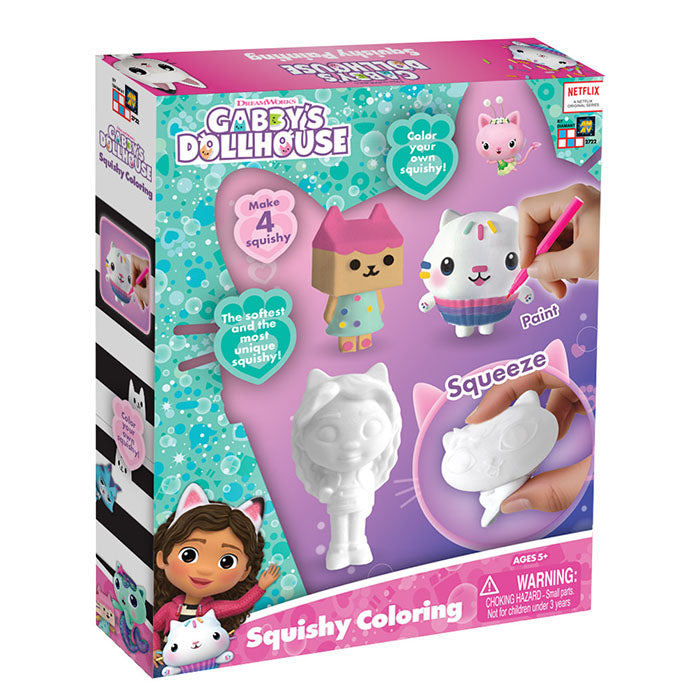 Color your own Gabby's dollhouse figurines squishy! This creative and colorful arts-and-crafts kit is inspired by the popular animated series Gabby’s Dollhouse. It’s designed to spark imagination and artistic expression in young fans of the show. The set combines painting fun with squishy figures, making it a tactile and visual delight for kids.