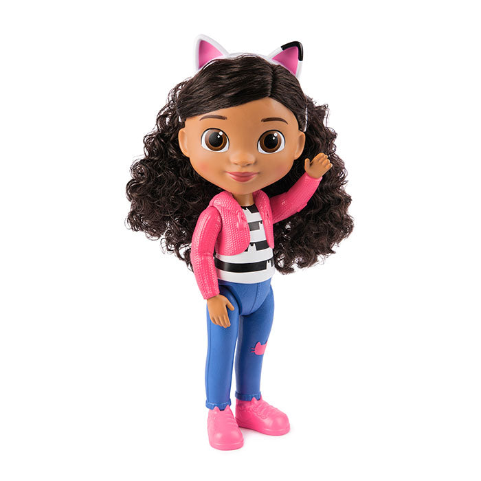 - 13-Inch Gabby’s Dollhouse Doll: Dressed in her classic outfit from the show, Gabby is ready for endless adventures! Realistic details like her fabric top, cat ears and kitty jeans bring Gabby to life.
