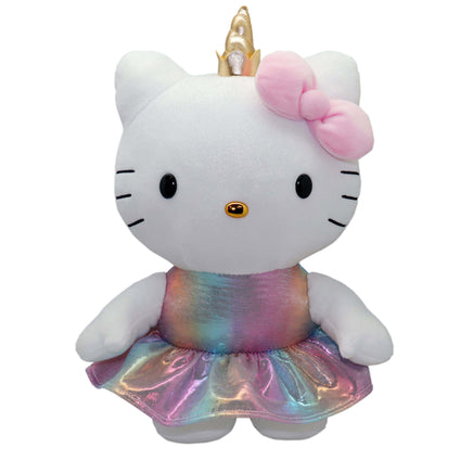 Unveiling the Hello Kitty Limited Edition Plush - a treasure you won't want to miss! Nestled within a captivating collector's sparkle box, each plush is a testament to exclusivity. Adorned in an ethereal iridescent fashion dress, Hello Kitty takes on a magical form, complete with an endearing unicorn horn that adds a touch of whimsy. The sparkle-infused fur and the glistening nose make every glance a moment of wonder. Elevate your Hello Kitty collection with this one-of-a-kind masterpiece - a fusion of cuteness and fantasy that promises to sprinkle enchantment into every corner of your world! Grab yours now before this shimmering dream drifts away into the realms of collectors' lore.