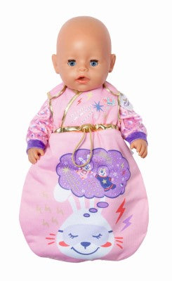 A birthday party is super nice and super exciting, but also quite exhausting. You’ll notice the “30 doll years” ... After her special day, BABY born snuggles into her pink sleeping bag. Thanks to the Velcro on the straps, it can be easily slipped on. The dreamy part is decorated with golden hems and has a print with space motifs. And so the birthday child dreams of the sun, moon and stars, cakes, streamers and confetti.