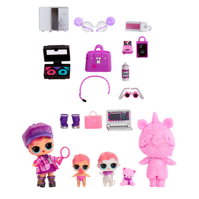 L.O.L. Surprise! is bringing you the most fabulous, interactive unboxing experience ever with a giant padlock design! Step into the world of surprises where you will need to crack codes, solve clues, and unlock secrets one by one to unbox cute fashions, accessories, and more! Each clue will lead you closer to the key to reveal the ultimate surprise! Unbox an exclusive Eye Spy Tot, Eye Spy Baby Sister, and Eye Spy Pet! 40+ Surprises to reveal!