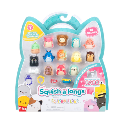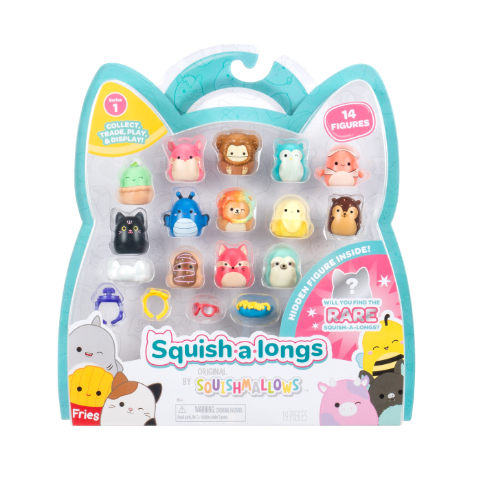 Get ready for a new level of squish with Squish-a-longs, the latest addition to the Squishmallows family! An adorable and portable collectible, Squish-a-longs Mini-Squish, made of squeezable plastic, is perfect with its 1-inch size! The fun is endless, with 100s of Mini-Squish to collect, trade, play, wear, and display! Show off your fandom by wearing the ring and dressing your Mini-Squish with fun accessories like glasses and hats. You can ensure you get them all with the helpful collector's guide. Take advantage of the ultimate Squish fun - start your Mini-Squish collection today!