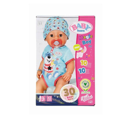 His favourite things to do are sleeping, eating and taking a bath. He loves to drink water from his bottle. Then he can do a wee in his nappy or potty, and cry real tears. As well as drinking water, BABY born can also eat porridge. Then he even does a number two. His arms, legs and head are extremely mobile, so putting on and taking off his cool clothes is child’s play. The Soft Touch body is lovely and soft.